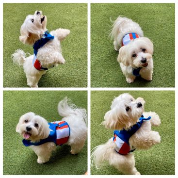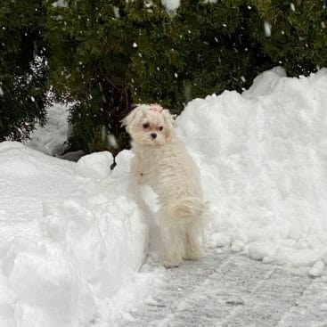 Olivia has settled in amazingly. She is the centre of our family. Literally everything revolves around her. She has an amazing personality, sweet and playful. Her appetite was out of control. We had to get her a slow feeding dog bowl and add water so she wouldn’t inhale her meals. Winter was fun for us dressing her up in cute sweaters and coats. When we go on our walks everyone stops her to play with her. She loves the attention. I have so many pictures we take some everyday. My daughter put a collage together. If you would like more I’m happy to send. She is our little princess!
